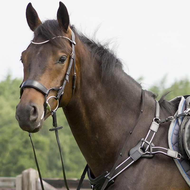 Hoofdstel Sedna van het merk QHP is speciaal ontworpen om de zenuwen van het paardenhoofd zoveel mogelijk te onlasten en optimaal de druk te verdelen. De speciale vorm van de neusriem zorgt ervoor dat het jukbeen en de aanhechting van de gezichtszenuw vrij liggen. Het anatomisch gevormde brede kopstuk zorgt voor vrijheid bij de oren en zorgt tevens voor optimale drukverdeling. Zowel het kopstuk als de nesuriem zijn met gel gevoerd welke de vorm van het paard aanneemt.