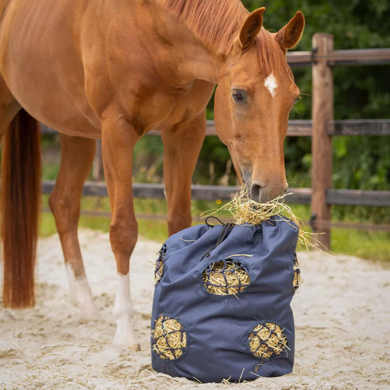 De QHP hooizak Multi is gemaakt van een sterke, waterafstotende stof. Je paard eet rustiger omdat hij meer zijn best moet doen om te eten. De hooizak is gemakkelijk te vullen aan de bovenzijde.