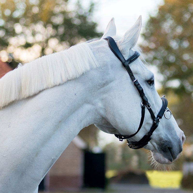 * neusriem voorzien van ketting als kern waardoor deze zich goed naar de neus