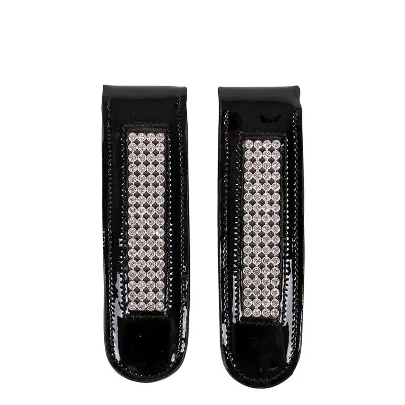 De QHP laarzenclips Madelon Junior zijn afgewerkt in lak leder met steentjes. Met deze laarzenclips van het merk QHP verander je gemakkelijk de uitstraling van je rijlaarzen. Je schuift ze over de buitenzijde van de schacht en je voelt ze niet zitten.