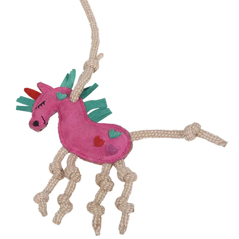 Met het QHP paardenspeelgoed Boxhanger hoeft jouw paard zich geen enkel moment meer te vervelen. De boxhanger is eenvoudig te bevestigen door het gebruik van het katoenen touw. Het touw is daarlangs voorzien van 3 stevige speeltjes vervaardigd uit katoen in combinatie met jute.