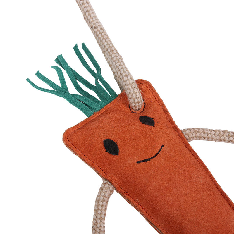 Het QHP paardenspeelgoed Wortel is gemaakt uit een stevige Jute zak bekleed met suede in de kleur Oranje. Voorkom verveling bij jouw paard of pony en geef ze een speeltje voor op stal.