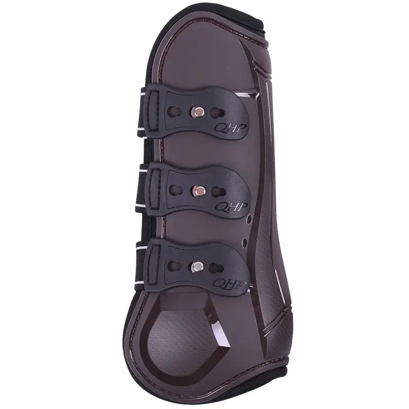 Anatomisch gevormde peesbeschermers van het merk QHP voorzien van speciale Airflow neopreen voering waarmee warmte en vocht goed wordt geabsorbeerd. De ventilatiegaatjes in het buitenmateriaal dragen zorg voor verkoeling. De beschermers zijn gemakkelijk te sluiten door elastische knopsluitingen.