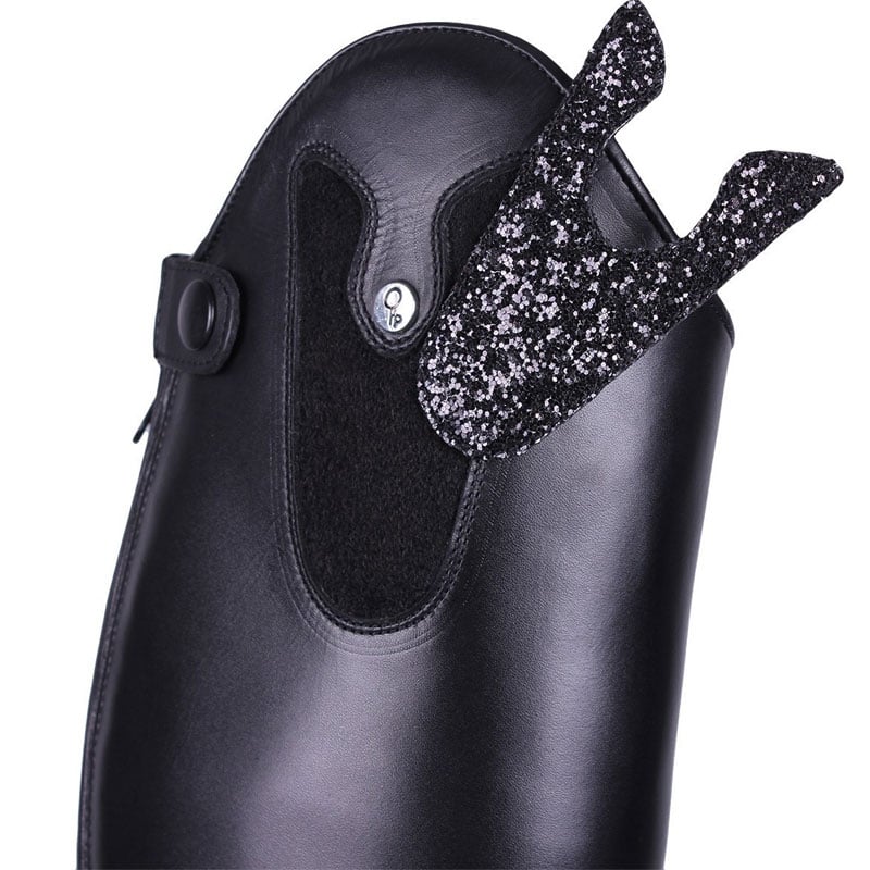 De rijlaars Sasha is aan te passen naar Uw eigen stijl door middel van de verwisselbare top op de bovenzijde. Deze tops zijn verkrijgbaar in diverse uitvoeringen. Standaard wordt de rijlaars geleverd met de zwarte glitter top zoals op de afbeelding.