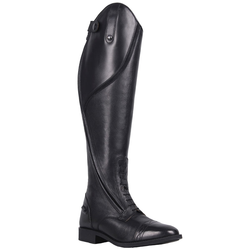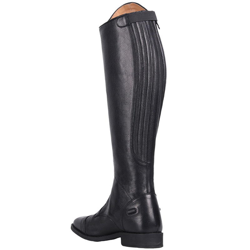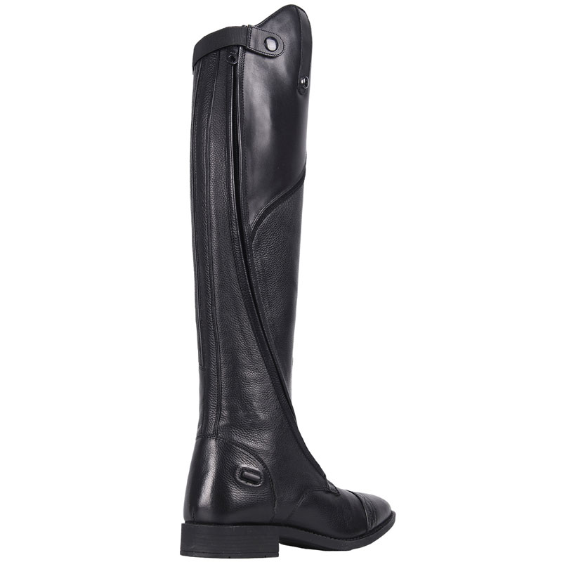 De QHP rijlaars Tamar Junior zwart is gemaakt uit kwaliteit goed zacht leder. De rijlaars is voorzien van een schuin geplaatste ritssluiting wat niet alleen een luxe uitstraling geeft, maar ook nog eens zorgt draagt voor extra comfort. De rijlaars is met synthetisch leder gevoerd en is aan de binnenzijde van de schacht uitgevoerd met een elastisch gedeelte voor het creëren van een optimale pasvorm.