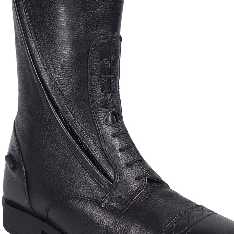 De QHP rijlaars Tamar is gemaakt uit kwaliteit goed zacht leder. De rijlaars is voorzien van een schuin geplaatste ritssluiting wat niet alleen een luxe uitstraling geeft, maar ook nog eens zorgt draagt voor extra comfort. De rijlaars is met synthetisch leder gevoerd en is aan de binnenzijde van de schacht uitgevoerd met een elastisch gedeelte voor het creëren van een optimale pasvorm.