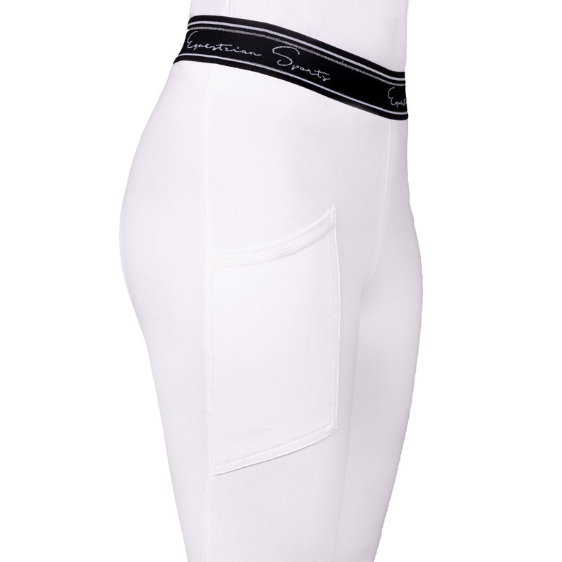 De QHP Rijlegging Eden Full Grip Junior wit is uitgerust met alles wat je nodig hebt om aangenaam te kunnen paardrijden: soepele, stretchende stof en een elastische tailleband. Tevens ben je altijd goed bereikbaar door het handige telefoonzakje. Het gestipte anti-slip patroon geeft de legging een sportieve look.