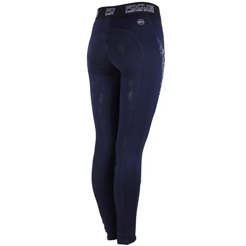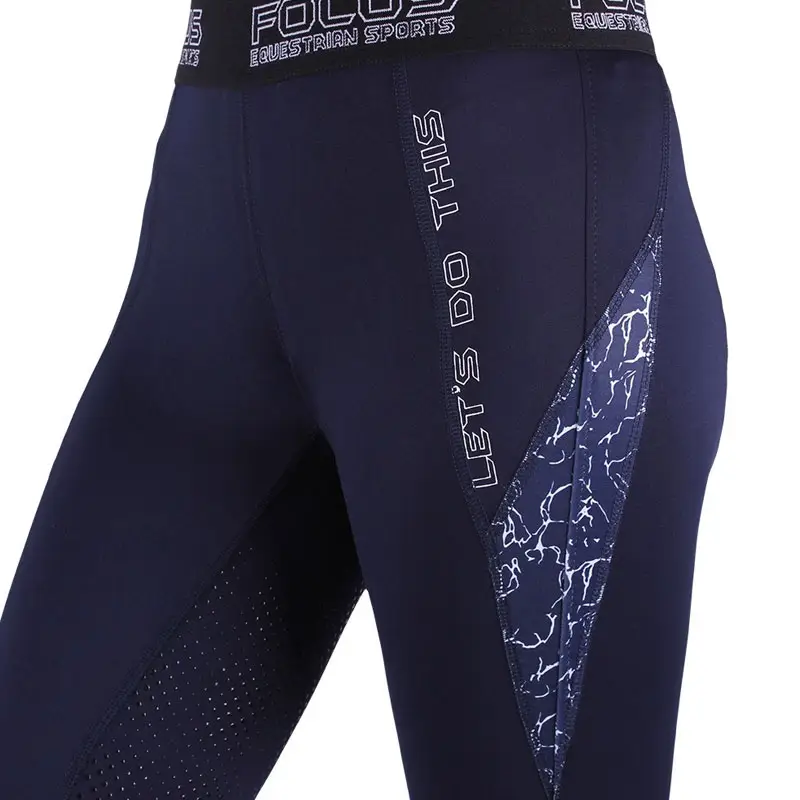 Rijlegging uit de QHP collectie voorzien van elastische brede tailleband, zakje met ritssluiting, Full Grip siliconen zitvlak en elastisch gedeelte bij de enkels. De legging is vervaardigd uit een comfortabele elastische stof en is afgewerkt met print op beide zijde.