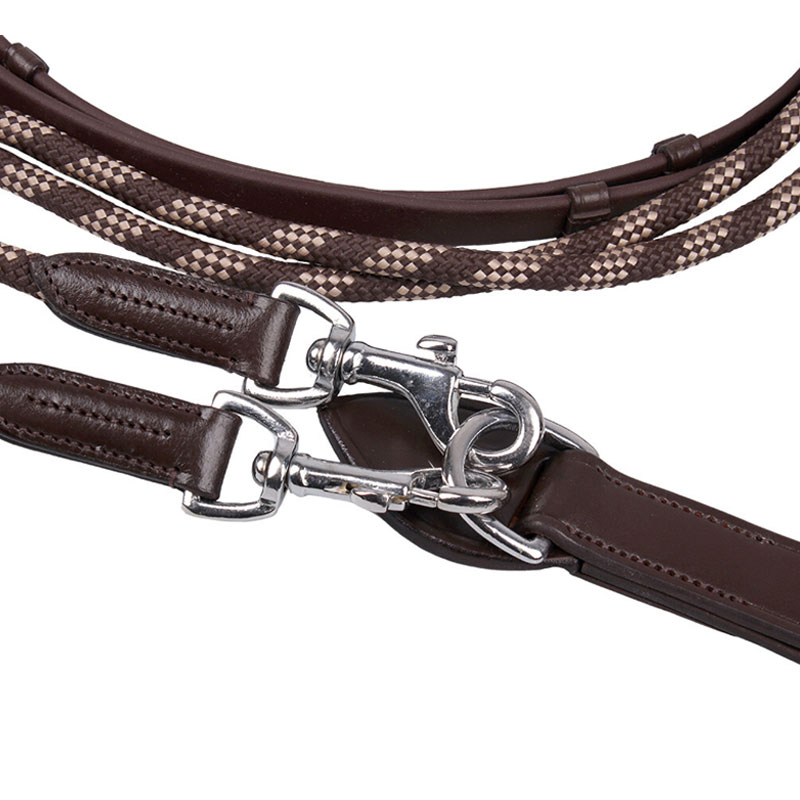 Softeugel van het merk QHP vervaardigd uit Biothane in combinatie met rond koord. Biothane is niet alleen sterk en duurzaam maar geeft ook nog eens een uistekende grip.