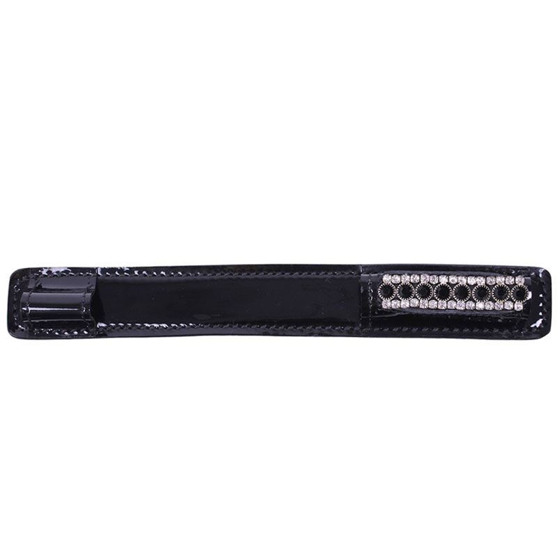 QHP spoorbeschermers Bernice zwart/zwart afgewerkt in lak met strass steentjes. Ter voorkoming van beschadigingen op de rijlaarzen.