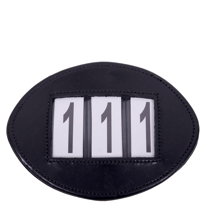 QHP Startnummer Modeste vervaardigd uit leder en gemakkelijk te bevestigen aan het hoofdstel of aan het dekje met veiligheidsspelden of klittenband. De nummerhouder wordt compleet geleverd met nummers.