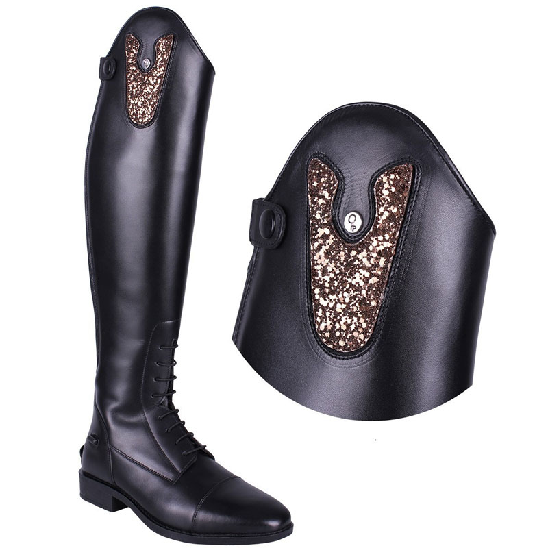 De QHP top Sasha sparkle is een verwisselbare top voor de QHP rijlaarzen Sasha. De top is volledig afgewerkt met glitter materiaal. De top is gemakkelijk te wisselen door het gebruik van de klittenbandsluiting.