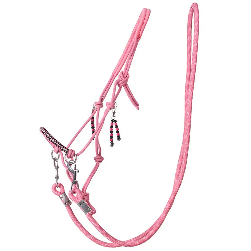 Complete set bestaande uit een touwhalster met afneembare teugels en een neckrope. Zowel het halster als de neckrope zijn afgewerkt met afneembare hangende bedeltjes. Beide zijn goed te gebruiken tijdens grondwerk of voor het bitloos rijden.