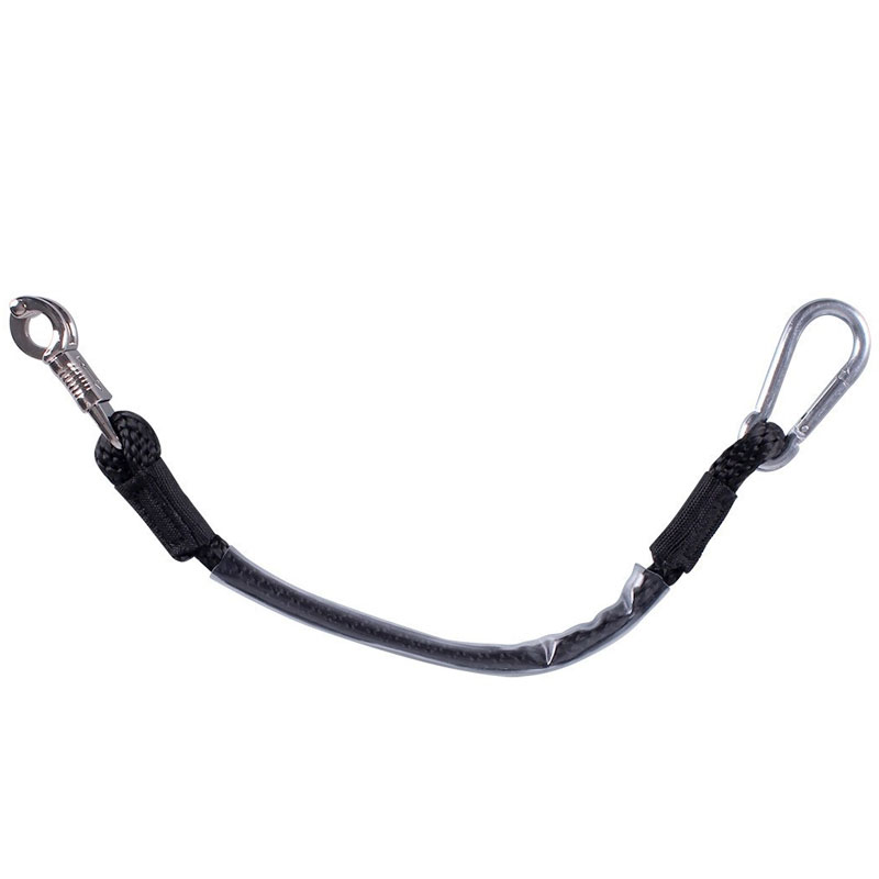 * karabijnhaak en paniekhaak aan het uiteinde