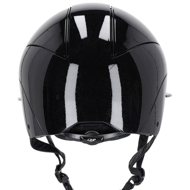 QHP Veiligheidscap Seattle Polo Zwart. Opvallende zwart glanzende paardrijcap met een glitter verwerkt in het spuiten van de lak. De cap heeft een groot vizier, is licht van gewicht en heeft een draaiknop aan de achterzijde welke ook in hoogte verstelbaar is voor het creëren van de juiste pasvorm. De cap is voorzien van een Coolmesh voering welke er zorg voor draagt dat het hoofd koel en droog blijft terwijl het ventilatierooster aan de voorzijde voor de juiste beluchting zorgt.