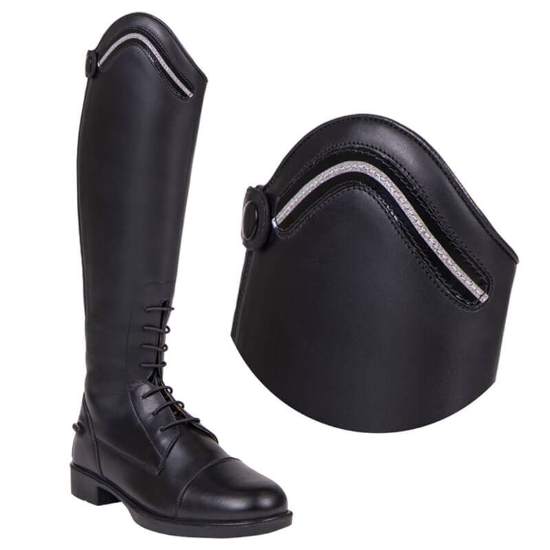 De QHP Verwisselbare Top Jaimy Shine Zilver is gemaakt uit synthetisch materiaal in combinatie met kleine glitters. De tops zijn passend op de QHP rijlaarzen Jaimy Junior.