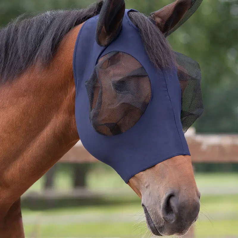 Het QHP Vliegenmasker Super Bug Navy is speciaal ontworpen om het comfort van het vliegenmasker op het paardenhoofd te verhogen. Het materiaal bij de oren en de ogen van het paard is gemaakt uit helder en luchtig mesh wat zorgt dat de vliegen en insecten uit deze omgeving wegblijven. De opening aan de voorzijde van het masker is geschikt om de voorplek doorheen te halen.