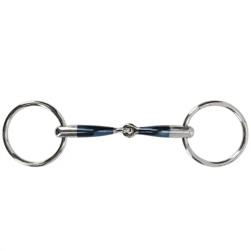 Door het gebruik van de losse ringen (watertrens) heb je een onhankelijke beweging in de paardenmond in combinatie met het enkele gebroken mondstuk wat stabiel in de mond ligt en een bepaalde druk tegen het gehemelte geeft.