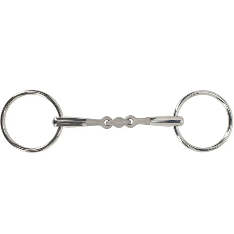Het mondstuk van dit bit is 14 mm dik en heeft vanaf maat 12,5 cm grote ringen. De maat 9,5 / 10,5 en 11,5 cm worden geleverd met kleinere ringen welke geschikt zijn voor bij pony’s.