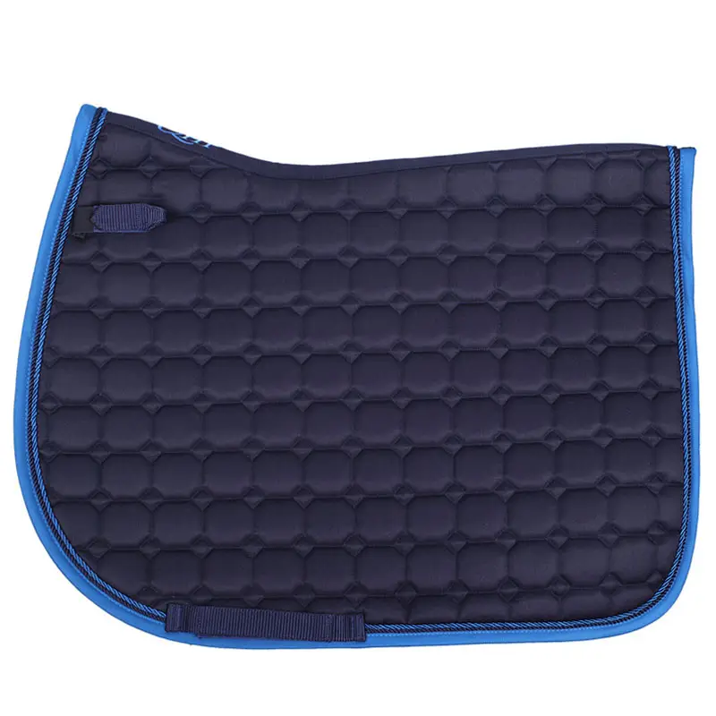 Zadeldek afgewerkt met dubbele koordpiping en contrast gekleurde bies rondom. Het zadeldekje heeft een anatomisch gevormde rugnaad en is voorzien van een vochtregulerende voering.