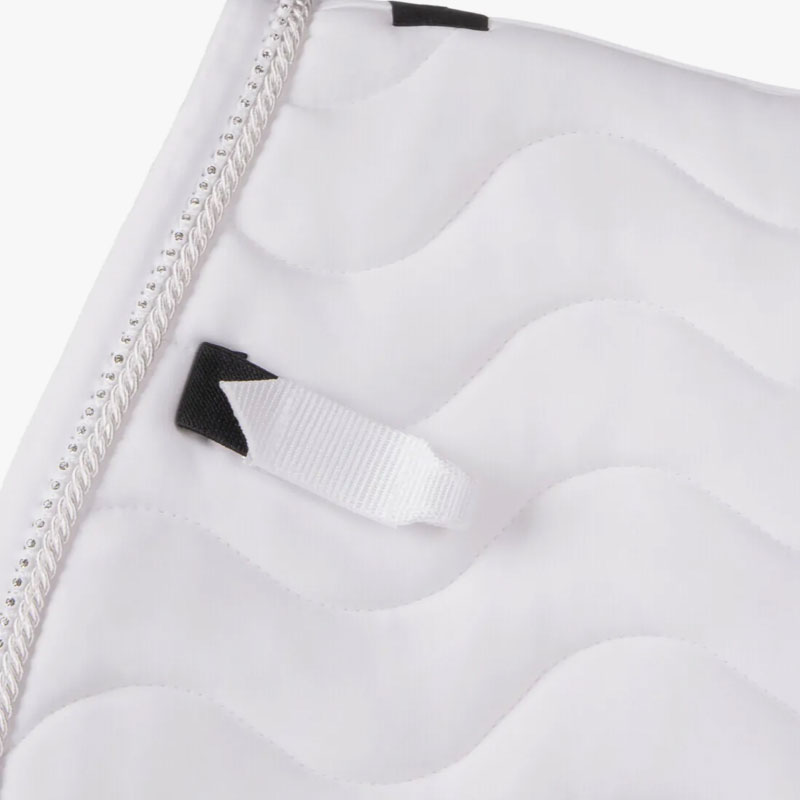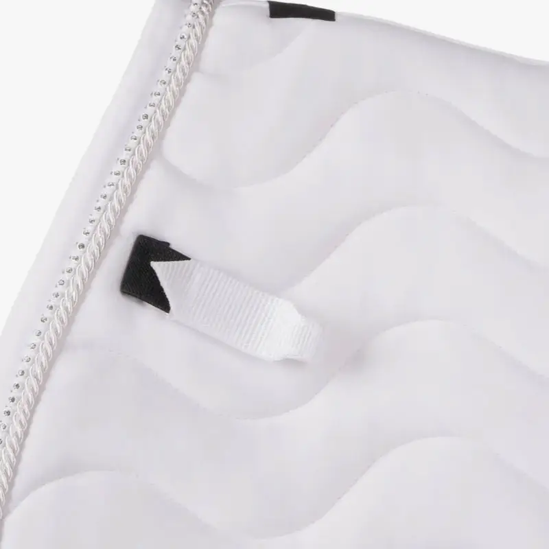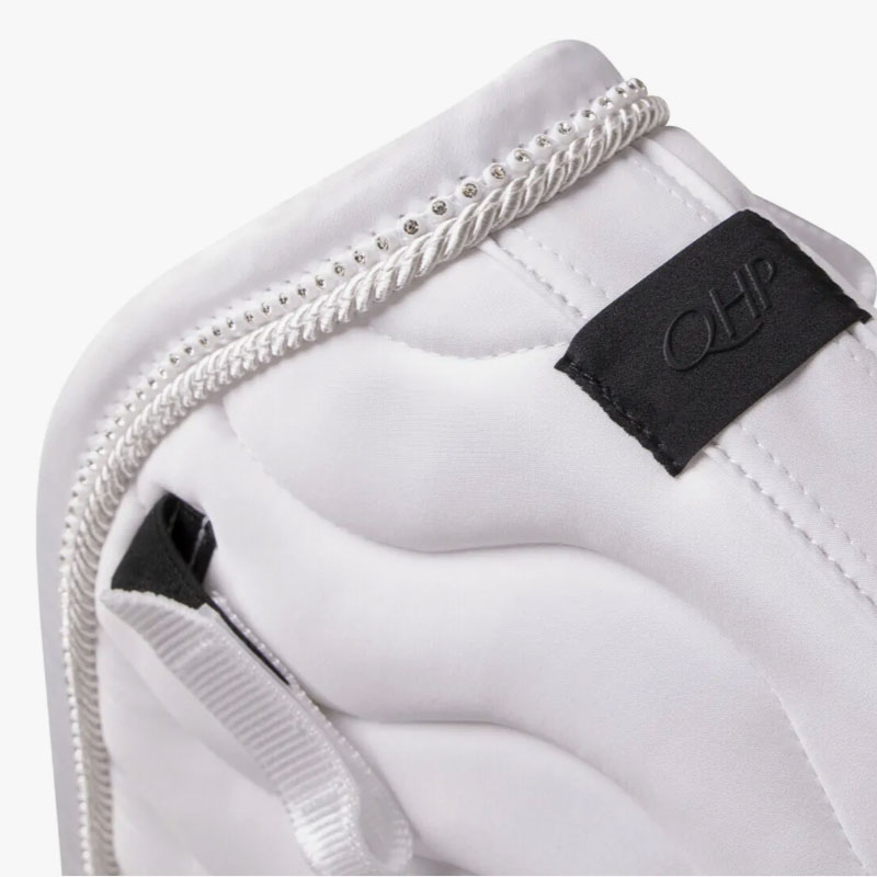 Het QHP Zadeldek Number wit is voorzien van vaste nummerhouders aan beide kanten. De nummerhouders zijn gemakkelijk te bevestigen door middel van klittenband, waardoor ze altijd goed blijven zitten. Het dekje heeft een anatomisch gevormde rugnaad en is voorzien van een absorberende en zweetopnemende mesh voering. Afgewerkt met een chique koordpiping in combinatie met strass.