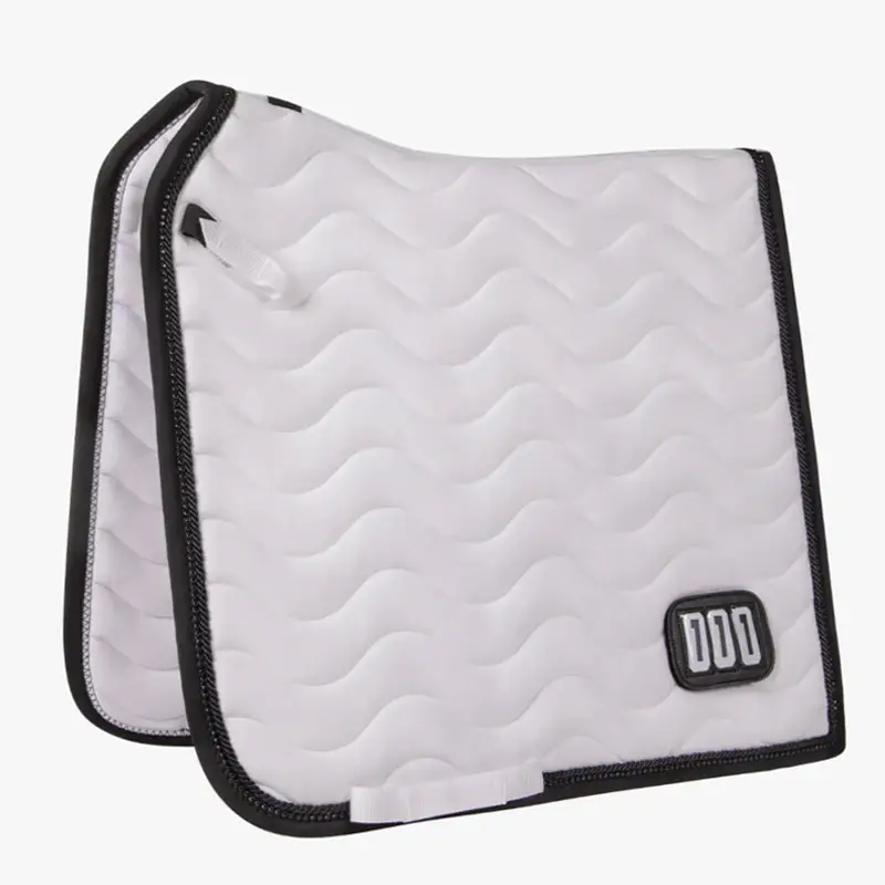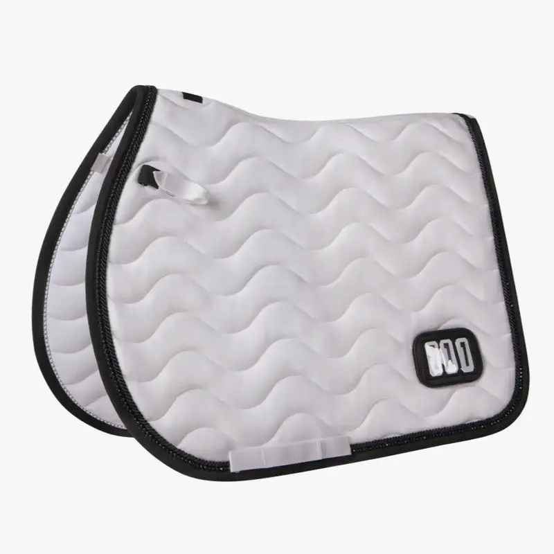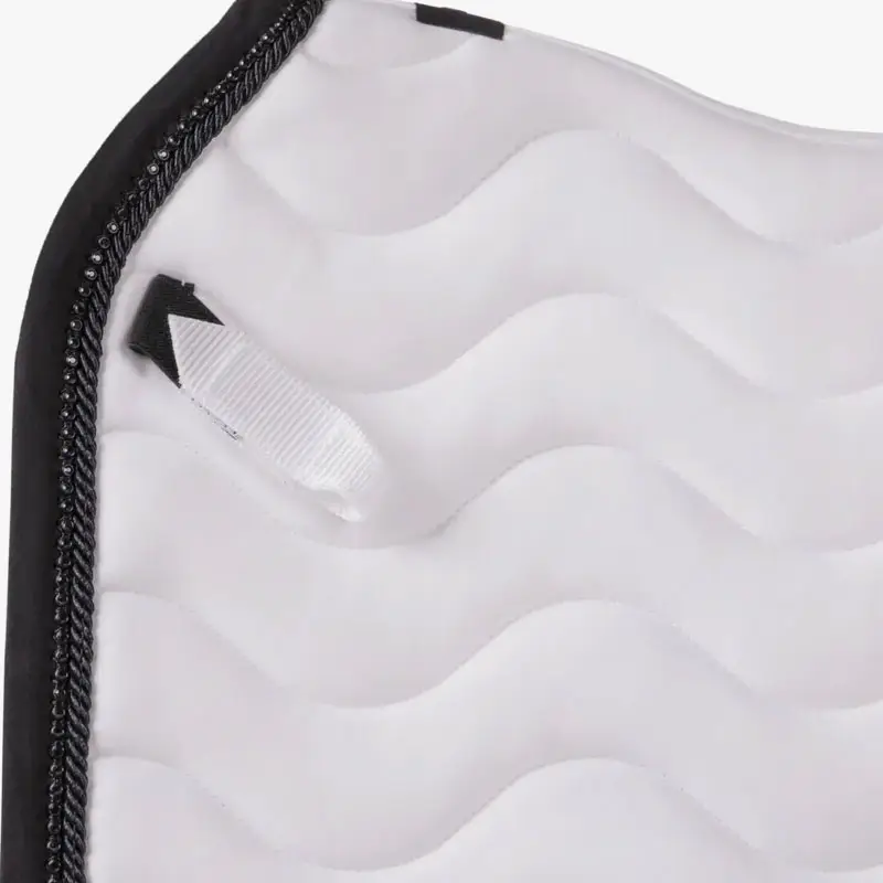 Het QHP Zadeldek Number zwart/wit is voorzien van vaste nummerhouders aan beide kanten. De nummerhouders zijn gemakkelijk te bevestigen door middel van klittenband, waardoor ze altijd goed blijven zitten. Het dekje heeft een anatomisch gevormde rugnaad en is voorzien van een absorberende en zweetopnemende mesh voering. Afgewerkt met een chique koordpiping in combinatie met strass.