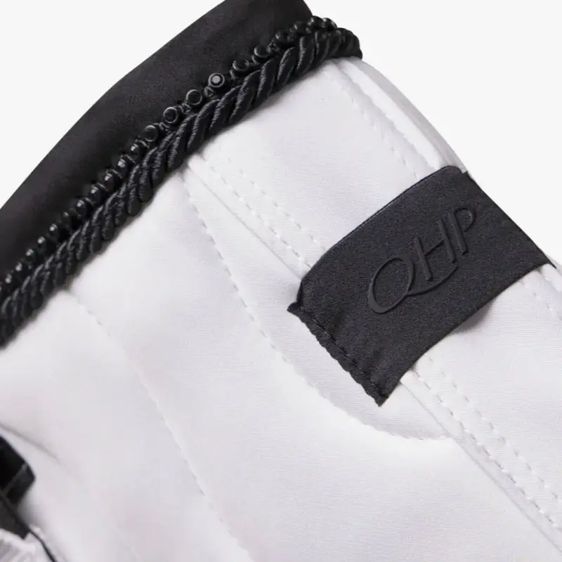 Het QHP Zadeldek Number zwart/wit is voorzien van vaste nummerhouders aan beide kanten. De nummerhouders zijn gemakkelijk te bevestigen door middel van klittenband, waardoor ze altijd goed blijven zitten. Het dekje heeft een anatomisch gevormde rugnaad en is voorzien van een absorberende en zweetopnemende mesh voering. Afgewerkt met een chique koordpiping in combinatie met strass.