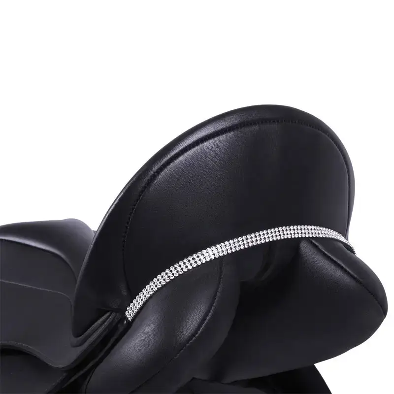 Maak van je zadel een opvallende verschijning door het gebruik van de QHP zadelsieraden. Het zadelsieraad is te bevestigen door het gebruik van elastische riemen welke over het onderste zweetblad van het zadel getrokken worden. De zadelsieraden zijn verkrijgbaar in twee maten.