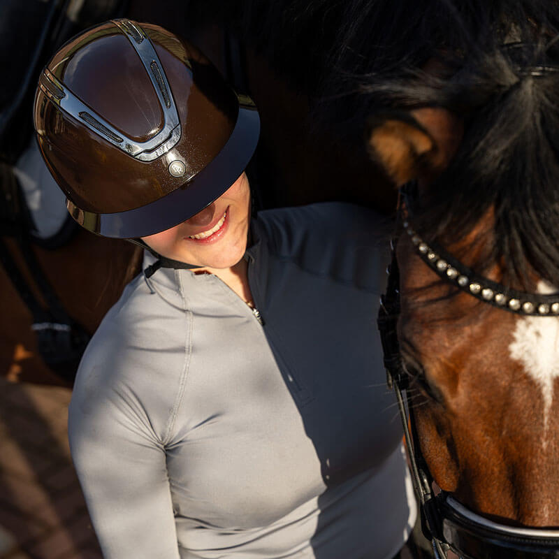Rijhelm BR Zeta Serene Shine Bruin/Gunmetal afgewerkt in een glanzende schaal in combinatie met ventiltie sleuven en een groot vizier.