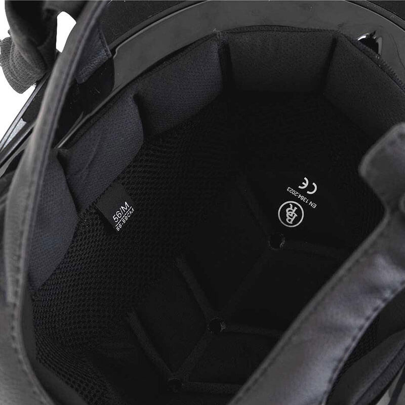 De cap is vervaardigd uit een lichtgewicht schaal van sterk ABS materiaal en heeft een verstelbaar 5-punts sluitsysteem in combinatie met een draaiknop aan de achterzijde welke zorg draagt voor een goede stabiliteit. Zowel de kinband als de binnenvoering zijn gemaakt uit ademend Cooldry vochtregulerend materiaal.
