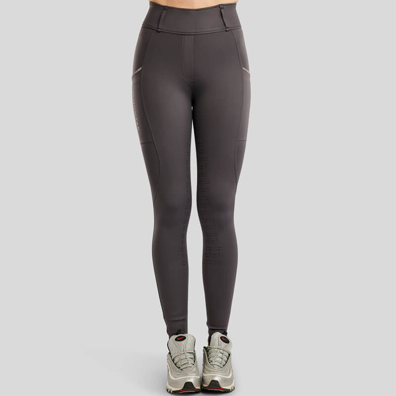 Rijlegging Montar MoLila Crystal Grey Slate. Modieuze en comfortabele dames rijlegging afgewerkt met Montar logo op het rechter been vervaardigd uit champagne kleurige crystal steentjes en crystallen bies langs beide zakken.