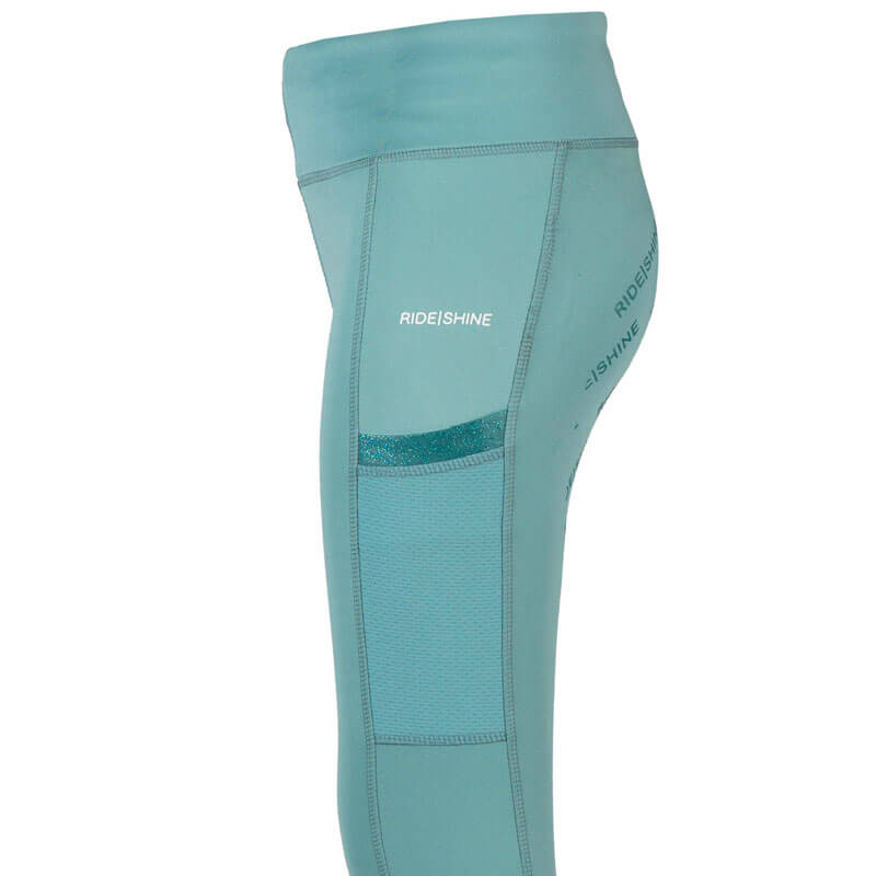 Rijlegging Red Horse Mitsu Kids Eucalyptus Green. Leuke kinder rijlegging gemaakt uit sneldrogend en ademend materiaal. De rijlegging is aan de binnenzijde van de tailleband aan te snoeren door middel van twee koorden. De rijlegging is voorzien van een zak op beide benen diep genoeg voor de mobiele telefoon en heeft een Full Grip siliconen zitvlak voor een stabiele zit in het zadel.