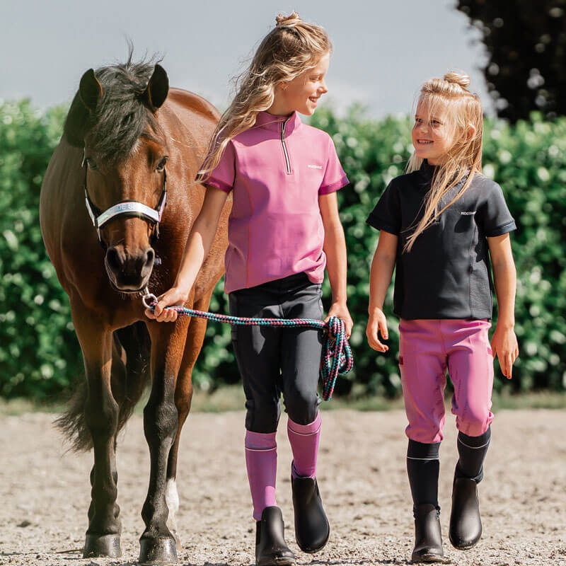 Rijlegging Red Horse Mitsu Kids Thistle Purple. Leuke kinder rijlegging gemaakt uit sneldrogend en ademend materiaal. De rijlegging is aan de binnenzijde van de tailleband aan te snoeren door middel van twee koorden. De rijlegging is voorzien van een zak op beide benen diep genoeg voor de mobiele telefoon en heeft een Full Grip siliconen zitvlak voor een stabiele zit in het zadel.