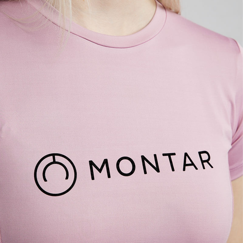 Shirt Montar MoHannah Candy Pink. Dames shirt met ronde en hals korte mouwen afgewerkt met Montar logo op de voorzijde voorzien van Houndstooth (pied- de-poule) print.