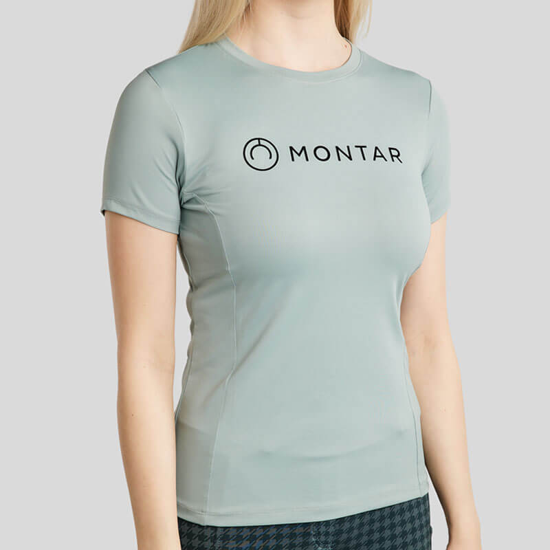 Shirt Montar MoHannah Turin. Dames shirt met ronde en hals korte mouwen afgewerkt met Montar logo op de voorzijde voorzien van Houndstooth (pied- de-poule) print.