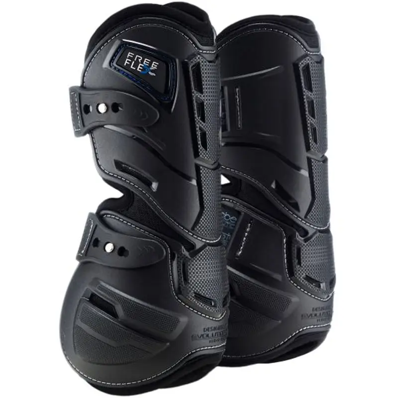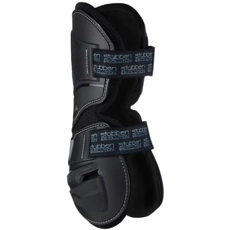 Flexibele Stubben peesbeschermers Hybrid Zwart. Door de anatomische vorm zijn deze peesbeschermers zo ontworpen dat het paard optimale bewegingsvrijheid heeft en zijn natuurlijke bewegingen van het paardenbeen blijft behouden. Dit in combinatie met de harde schaal draagt zorg voor optimale bescherming van de pezen en kogelgewrichten. De voering draagt er tevens zorg voor dat de pezen niet te warm worden en hebben een uitstekend ademend vermogen.
