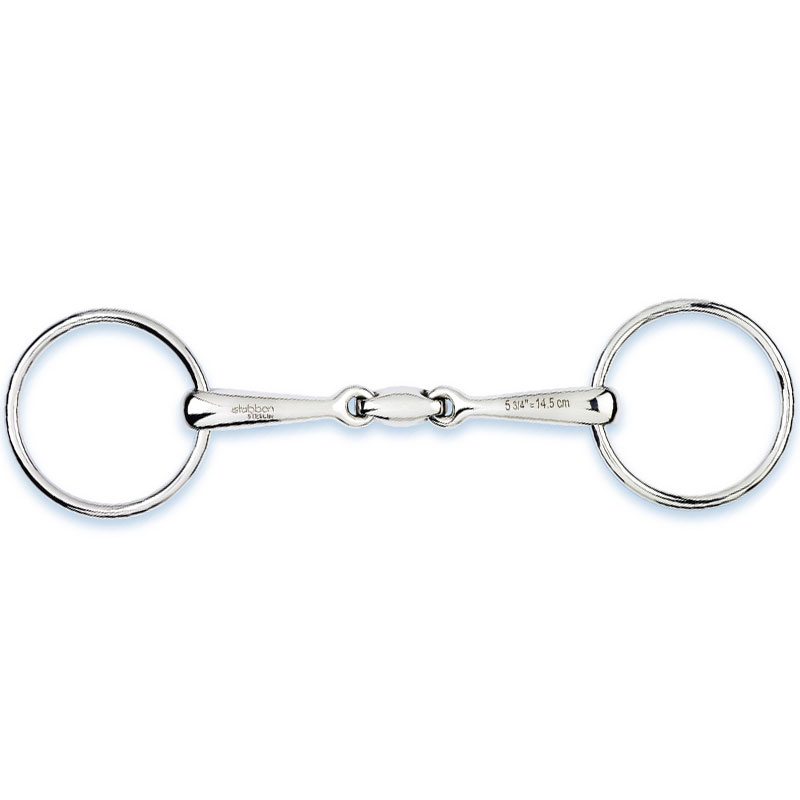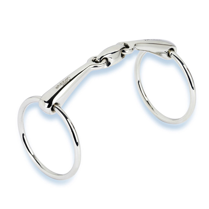 Stubben SteelTec dubbel gebroken watertrens Easy Control lijkt op en werkt als een normale driedelige watertrens. Bij normale teugeldruk werkt dit bit als een driedelig bit, echter wanneer een corrigerende teugeldruk wordt gebruikt, verandert de werking van het bit in een stang.