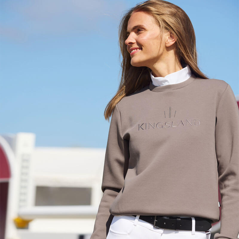 De sweater is uitgevoerd met ronde hals en lange mouwen. Op de voorijzde is deze afgewerkt met een geborduurd Kingsland logo in combinatie met Swarovski detail.