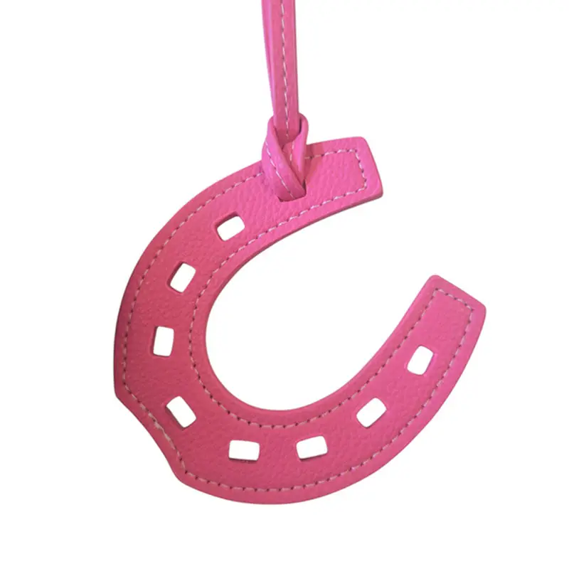 Tashanger Hoefijzer Fuchsia. Deze hanger is gemaakt uit dubbel gestikt PU leer in het model van een hoefijzer welke zorgt voor juist net dat beetje extra geluk. Ook geschikt als zijnde sleutelhanger. Een leuk accessoire voor de paardensport liefhebbers met een mooie uitstraling.
