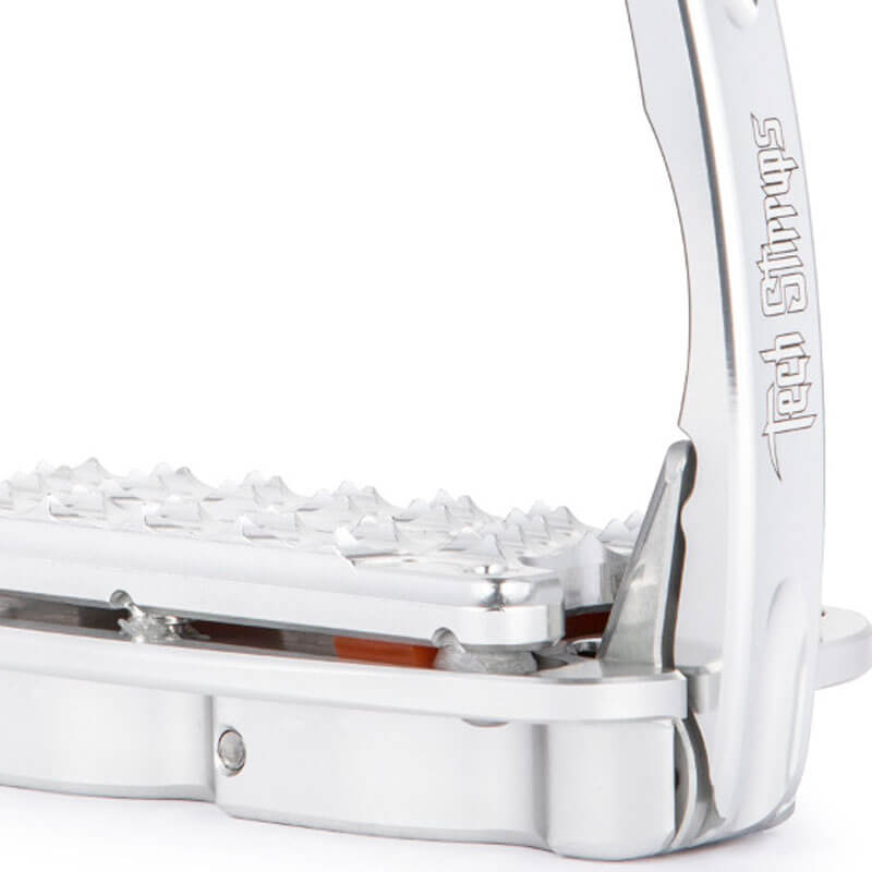 De beweegbare arm aan de buitenzijde van de Tech Stirrups gaat door een bepaalde druk open tijdens een een val, waardoor de voet direct vrij komt. Door het automatische veersysteem keert de beweegbare arm ook direct terug naar de oorspronkelijke positie.