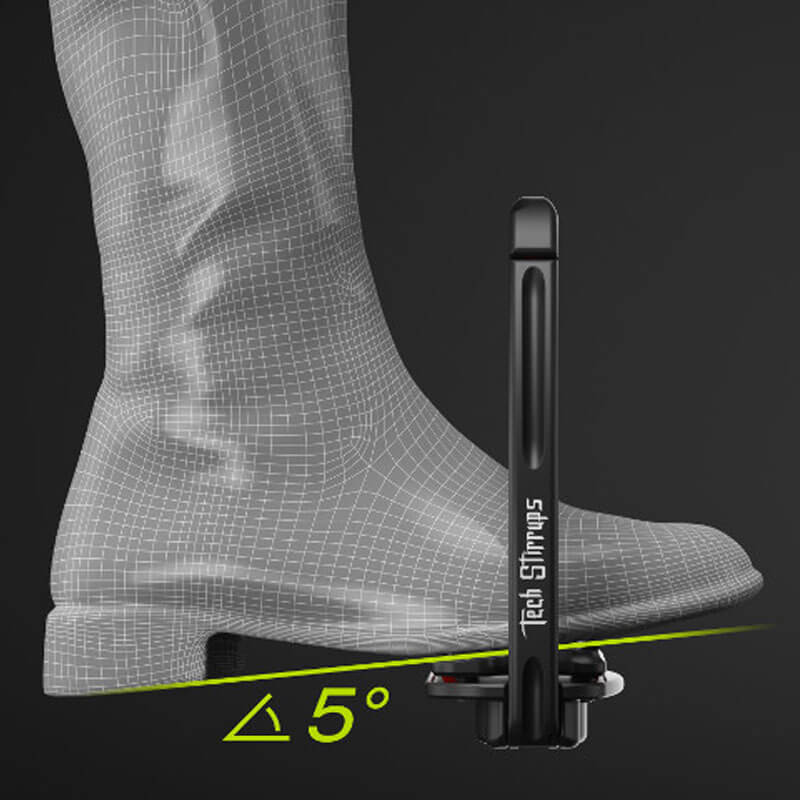 De beweegbare arm aan de buitenzijde van de Tech Stirrups gaat door een bepaalde druk open tijdens een een val, waardoor de voet direct vrij komt. Door het automatische veersysteem keert de beweegbare arm ook direct terug naar de oorspronkelijke positie.