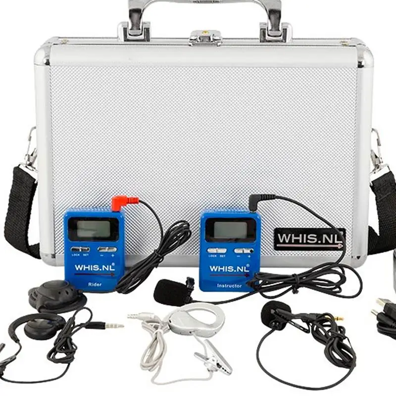 Ontvanger: De instructeur of instructrice geeft les door het gebruik van de WHIS zender. Met de bijbehorende ontvanger en de oortjes kan men eenvoudig luisteren naar wat er wordt aangegeven.