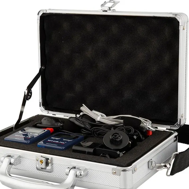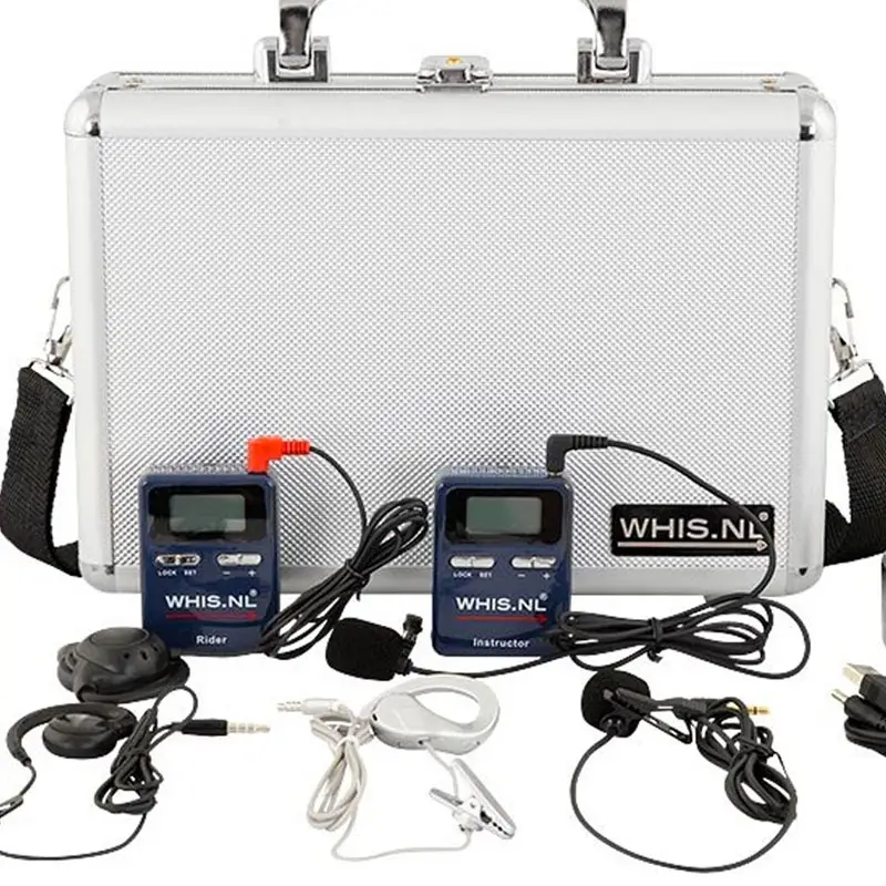 Ontvanger: De instructeur of instructrice geeft les door het gebruik van de WHIS zender. Met de bijbehorende ontvanger en de oortjes kan men eenvoudig luisteren naar wat er wordt aangegeven.