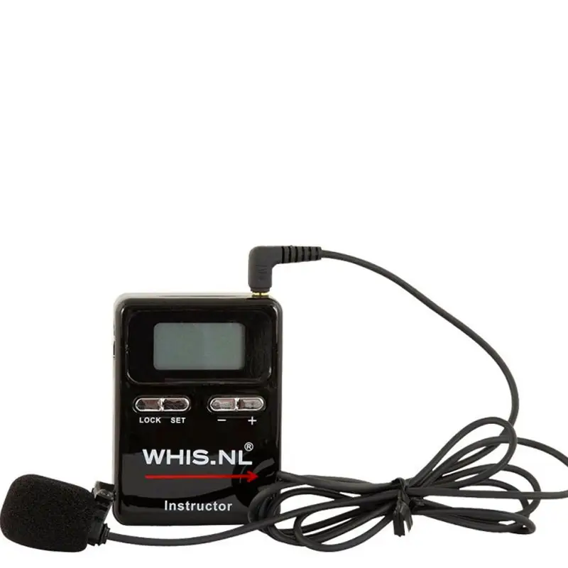 Ontvanger: De instructeur of instructrice geeft les door het gebruik van de WHIS zender. Met de bijbehorende ontvanger en de oortjes kan men eenvoudig luisteren naar wat er wordt aangegeven.