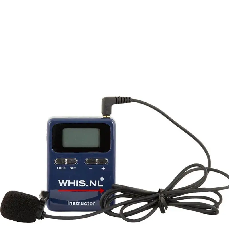 Ontvanger: De instructeur of instructrice geeft les door het gebruik van de WHIS zender. Met de bijbehorende ontvanger en de oortjes kan men eenvoudig luisteren naar wat er wordt aangegeven.