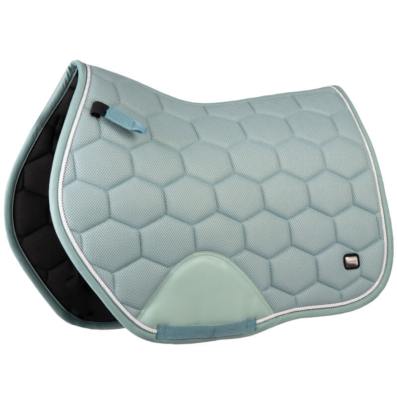 Zadeldek EQPRO Precious Blue Reef vervaardigd uit mesh wat het ademende vermogen optimaal stimuleert in de zomer.
